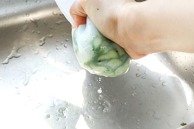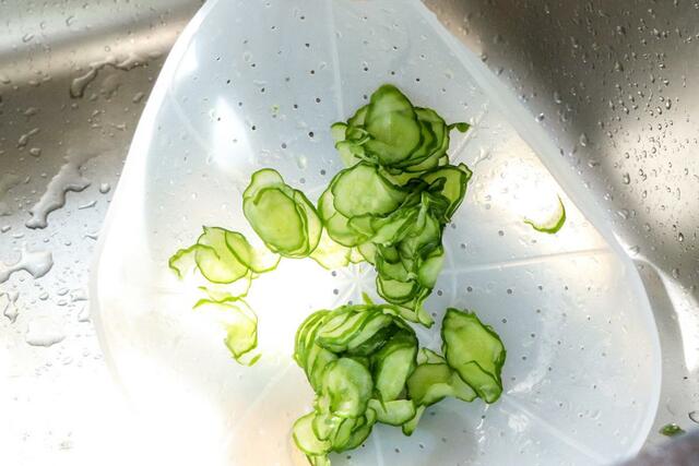 ポテトサラダや酢のものに使うために塩もみをしたあと、いつもは手で握って水を絞っていましたが……。