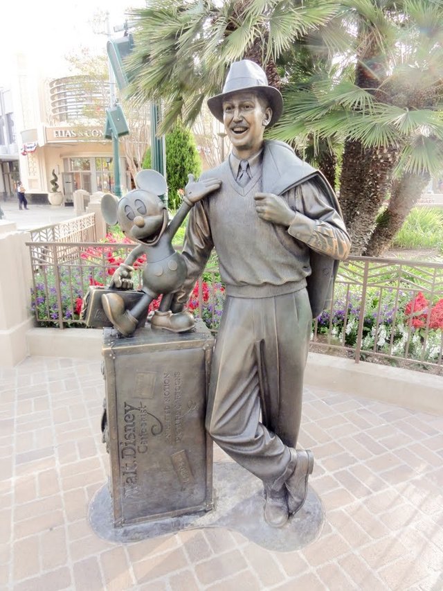 そんなエリアのシンボルとして、若き日のウォルトとミッキーマウスの像が作られたのです。