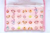 フタ側は、ピンク地に7人のお顔とドーナツの総柄、フタの部分は、白地に美味しそうなダッフィーたちのロゴ。