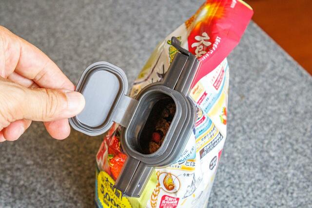 このクリップのおかげで、ずっと地味にストレスだった袋からの取り出しや、移し替えが快適に。まさに神アイテムのひとつだと思います。