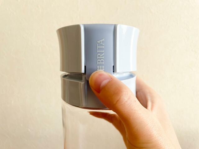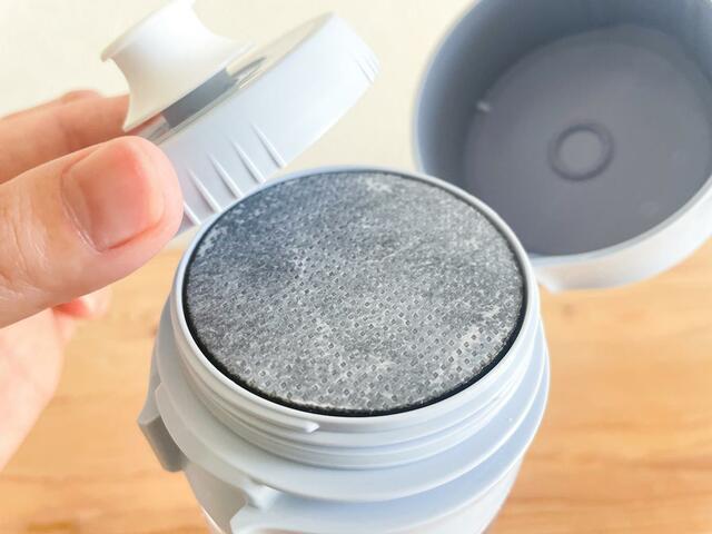 飲み口の下には浄水カートリッジがセットされていて、飲むときに浄水フィルターを通ってろ過される仕組み。