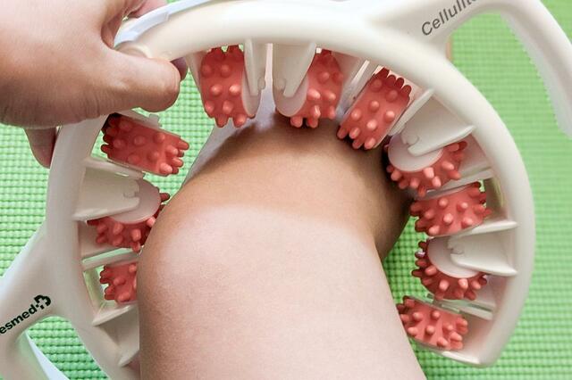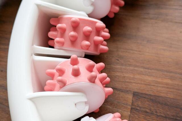 転がしながら表面のセルライトを中央に寄せ、つぶつぶの部分でマッサージしていくそうです。