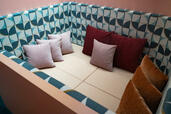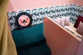 壁にはおしゃれなアートが登場し、ホテルがテーマとする1950年代アメリカの雰囲気を演出します。