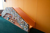 増室された半個室は、カーテン付きで、さらに入り口とくつろげるスペースの間を仕切る壁を付けています。