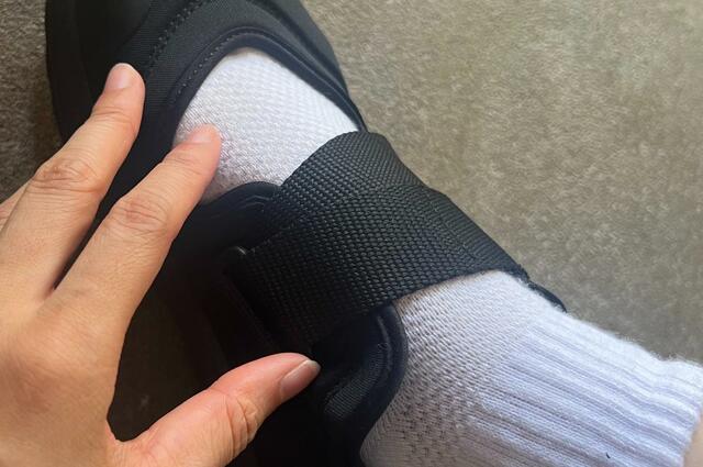 ベルト部分はクロスになっていて、面ファスナーを外してワンアクションで脱ぎ履きすることができます。