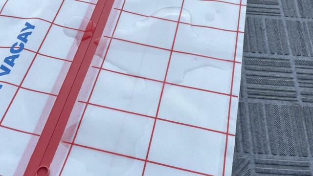 ツルッとしていて、他の衣類やカバンが濡れるのを防いでくれるんです。