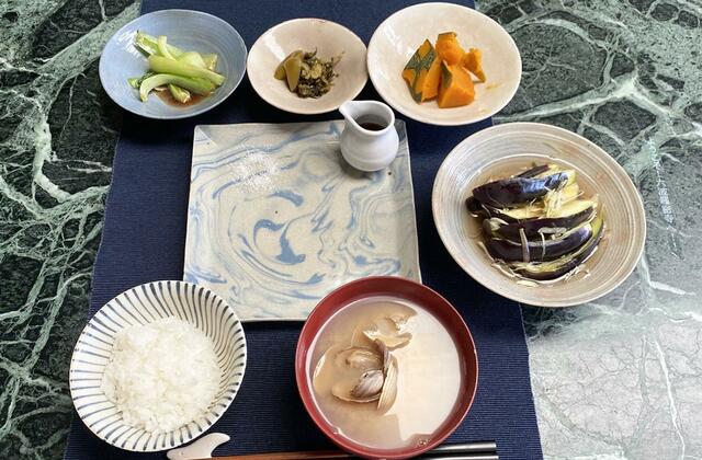 やはり市場で見つけた「大阪の水ナス」を白ダシで漬けてみた。そんなに水分はなかったが、皮が薄い、果肉が柔らかい。うん、横須賀の水ナスよりもソフトな感じ。かぼちゃ煮、青梗菜、高菜漬け、あさりの味噌汁、ごはん。