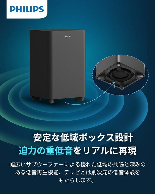 本日2025年7月22日は、あらゆるエンターテイメントをより優れた深みのあるサウンドで楽しめるPhilips(フィリップス)の「サブウーファー付きサウンドバー(TAB5309)」がお得に登場しています。