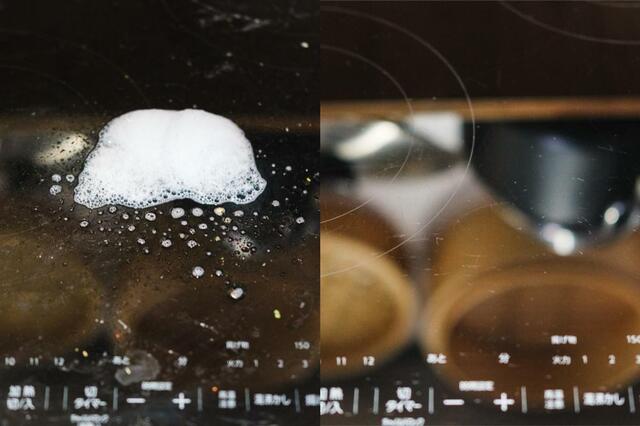 水拭きだけでは落ちにくいIHの汚れもこのとおり。