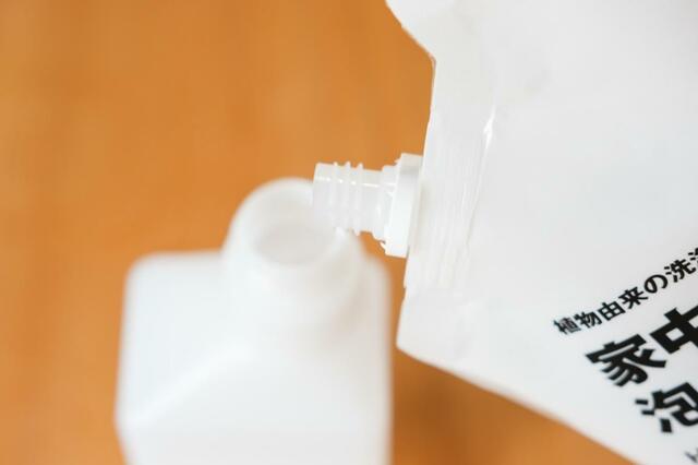 旧タイプは一度で注ぎ切るような詰替えパックでしたが、新タイプはスクリューキャップ付きで保管も注ぎやすさも抜群。