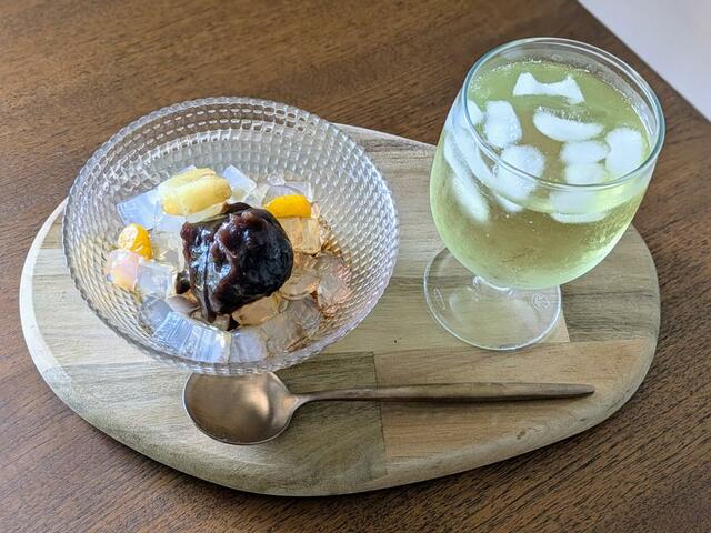 この夏ハマっているのが、あんみつとレモングラス緑茶の組み合わせ。