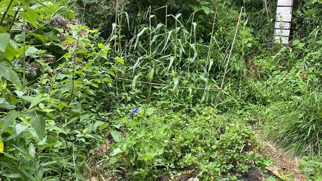 涼しい〜〜! 昨日までの日々が信じられないほどの涼しさ。裏庭にトウモロコシと野いちごが生育中。朝ごはんはいつもと変わらぬものたち。