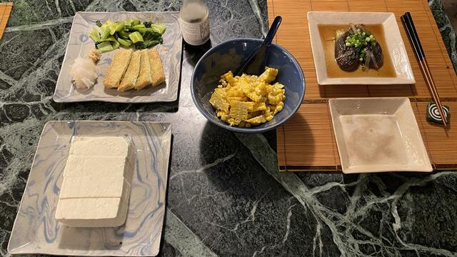 ほかに、青梗菜、トウモロコシ。久しぶりに、ナスの煮浸しを作った。