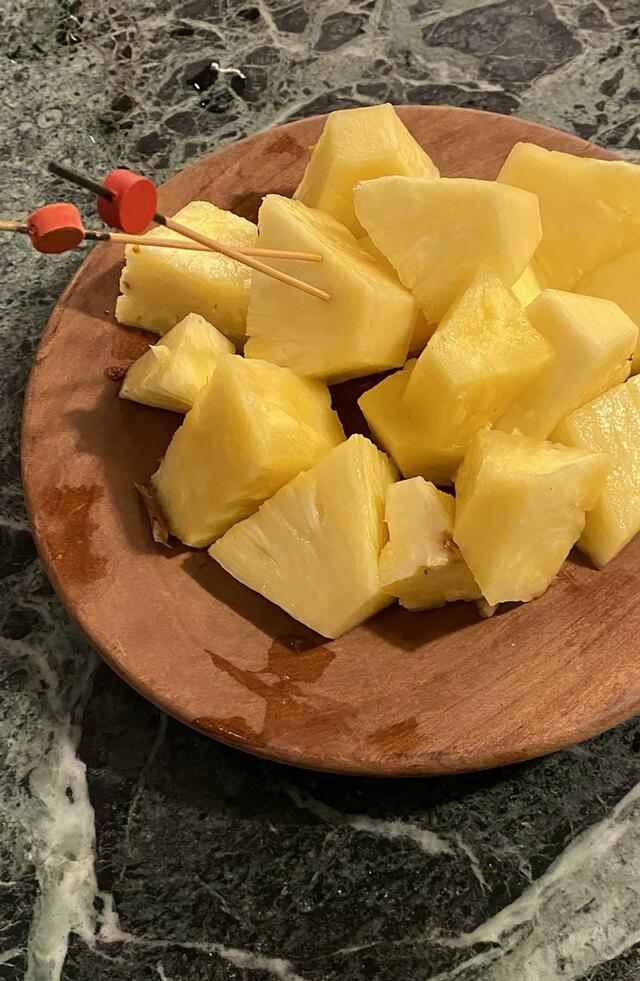 生パイナップルを解体。パイナップルは格別な味わい。また買ってこようっと! それにしても本日は涼しかった。毎日こんな日だといいなあ。