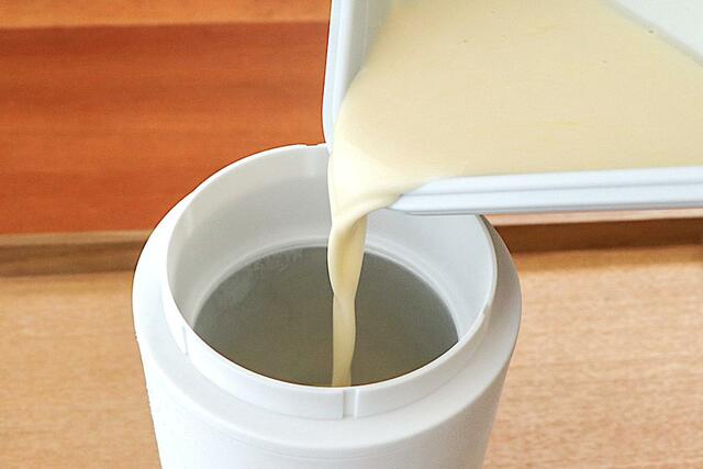 下準備が済んだら、保冷容器に混ぜておいた材料を入れます。