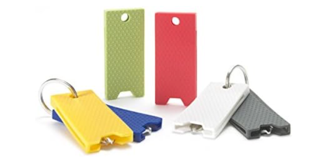 レッド、イエロー、グリーン、ブルー、ホワイト、ブラックの6色展開なので、家や車、仕事用などと色分けして使うことでパッと見で鍵の識別ができます。
