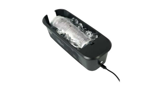 「USBぐるぐる缶クーラー」は、氷と自動回転によって缶飲料を急速冷却するUSB給電式の缶クーラー。