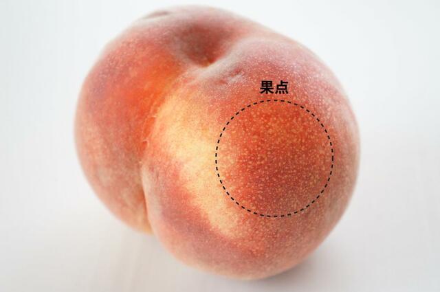 表面にある白いポツポツとした斑点は、「果点」といって、桃の糖度が増したときに入る皮の亀裂です。この「果点」があると甘い桃の証拠となるので、表面全体に入っているものを選ぶのがポイント!