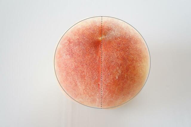 ふっくらとした丸みと表面の割れ目を中心として左右対称なものがおいしい桃の「形」。