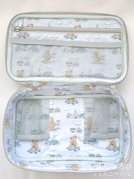中は、同じブルー地に、お支度、おでかけダッフィー、ケープコッドの総柄。