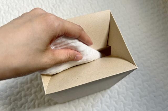 紙製でできた使い捨てのサニタリーボックスで、こちらは箱タイプ。インテリアにもなじむナチュラルな陶器調です。