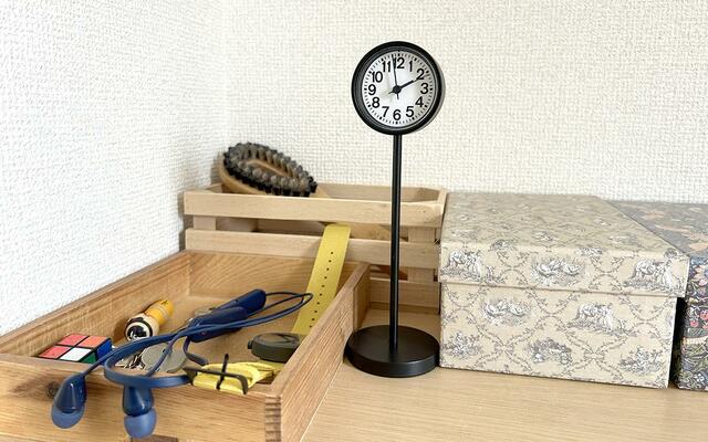 そこで我が家は家のいろんな場所に時計を置くようにしています。その中でもとくに使い勝手が良いのが無印良品の「公園の時計・ミニ」です。