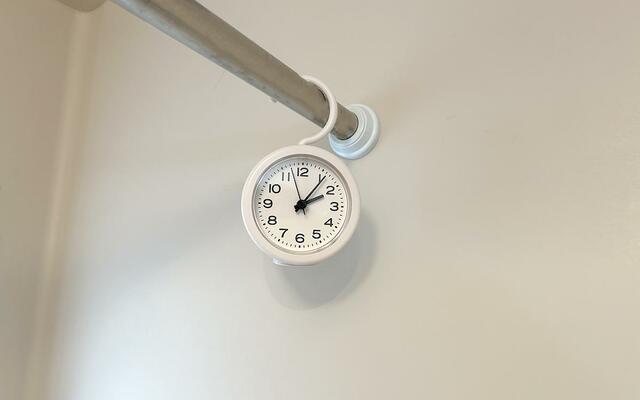 そこで、お風呂には無印良品の「アナログバスクロック」を置いています。これなら濡れても大丈夫!