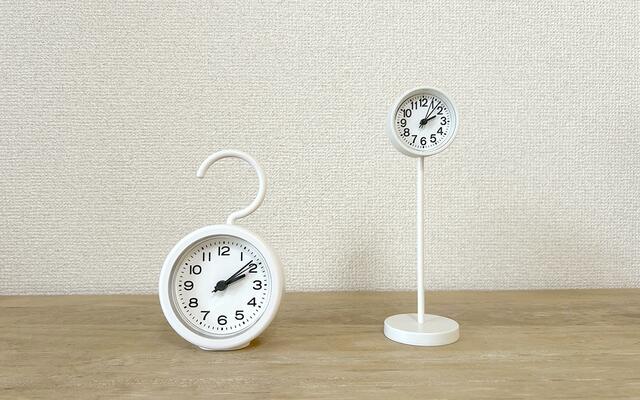 おもちゃのような見た目ながらも実用的、スリムで場所を取らない無印良品の「公園の時計・ミニ」。お風呂場でどれだけ濡れても大丈夫な「アナログバスクロック」。
