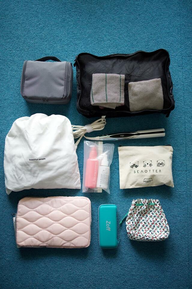 着替え用の洋服&下着、靴、洗面用具&化粧品、充電ケーブル&バッテリー類、タブレット&キーボードなどなど、2泊3日分の荷物がちょうど入るくらい。