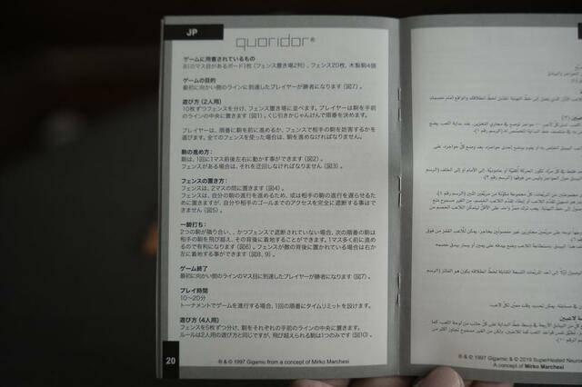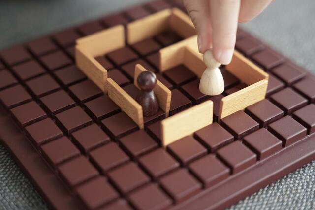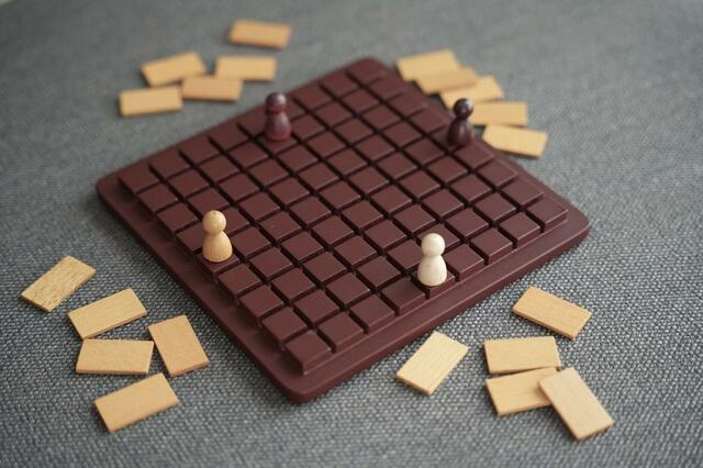 9×9マスの盤面と20枚の壁、自分のコマで遊ぶボードゲームで、2人〜4人で遊べます。
