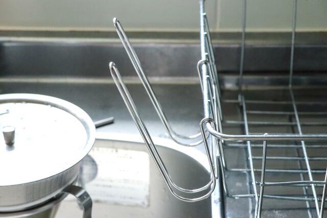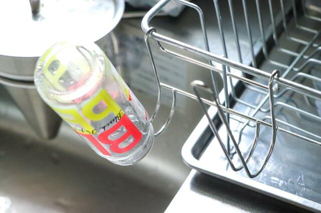 一点注意したいのは、水切りカゴが軽い状態だと、重い水筒や瓶をかけたときにカゴごと倒れてしまう可能性があること。
