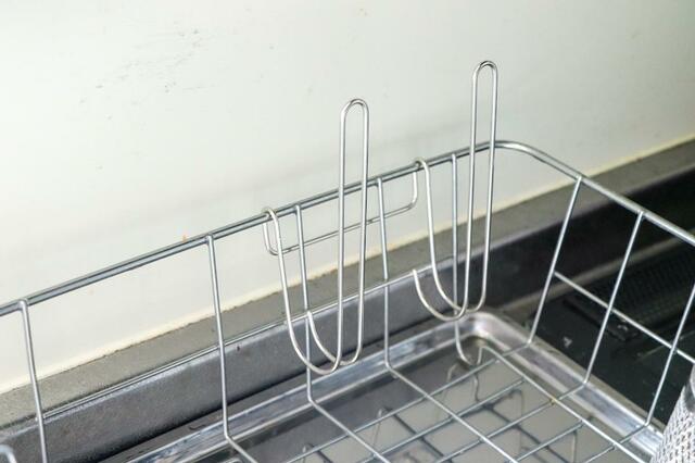 重いものをかけるときには、カゴの内側に向かってボトルフックをかけるか、カゴの中に皿を入れておくと安定しますよ。