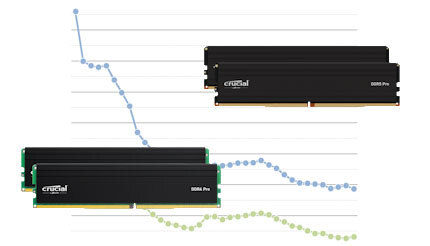 こうした動きの背景には価格の変化が影響している。そこで、比較可能なように1GBあたりの単価(GB単価)を算出し、DDR4とDDR5を比較する。