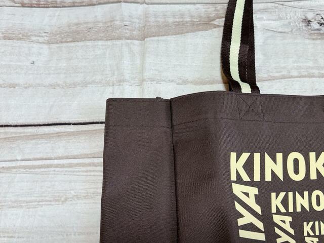 お馴染みの紀ノ国屋ロゴは、イエローベージュカラーで前面にどどんと大きくプリントされています。