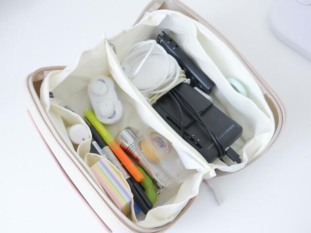 コスメ以外にも文房具やガジェット類をまとめて入れたら、家のどこでも仕事やちょっとした事務作業ができるようになったので、こういう使い方もいいなと思いました。