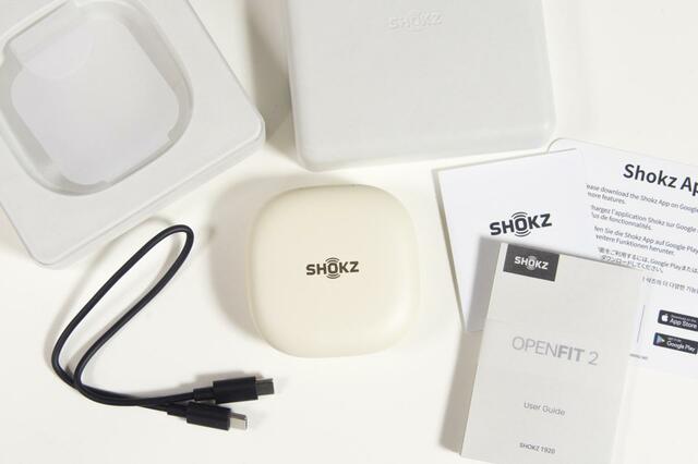 内容物はOpenFit 2本体、USB-Cの充電ケーブル、説明書類。