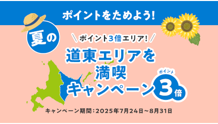 「夏の道東エリアを満喫キャンペーン」では、道東エリアにおいて付与されるポイントが3倍になる。