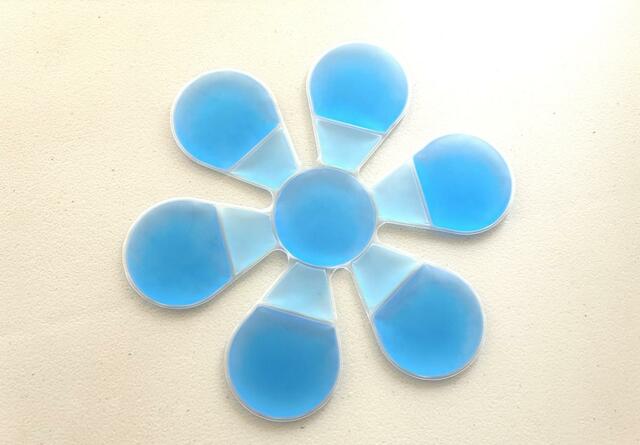 中央の丸い部分でしっかりと頭頂部を冷やし、まわりの6つの丸い冷却材が頭部全体を冷やしてくれます。
