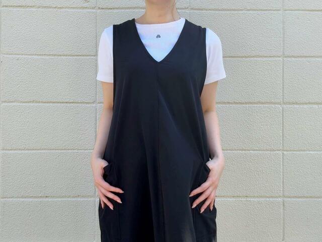 サラサラの生地で着心地抜群!深めVネックと大きなポケットが大人かわいいデザイン