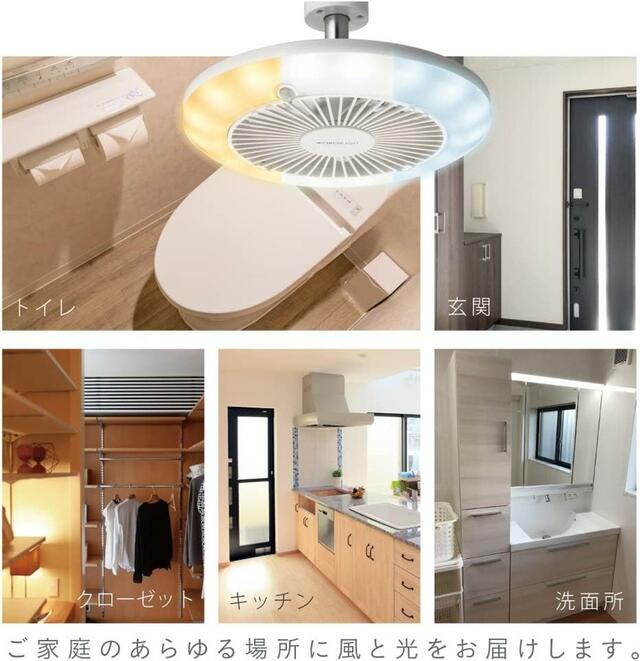 DOSHISHAの「サーキュライト ソケットシリーズ E26モデル」はコンパクトサイズなので、トイレや脱衣所、玄関など狭い空間でも場所を取らずに設置可能。熱がこもりがちなスペースにも風を送り込み、空気を循環。快適性がぐっと向上します。