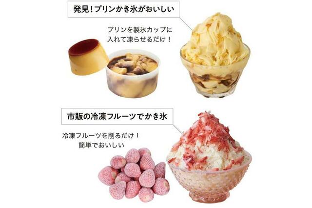 水はもちろん、ジュースやプリンも専用の製氷カップを使って凍らせれば、あっという間にオリジナルのかき氷に。冷凍フルーツも削れちゃいます。