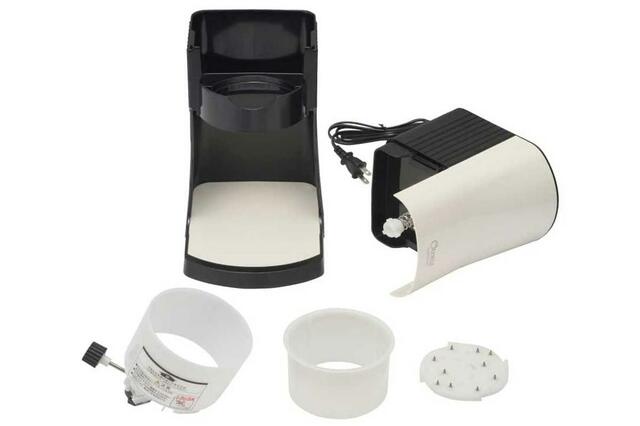 ドウシシャの「電動ふわふわとろ雪かき氷器」なら、氷を入れてセットしたら、ボタンを押すだけでフワッフワのかき氷が食べられるんです。