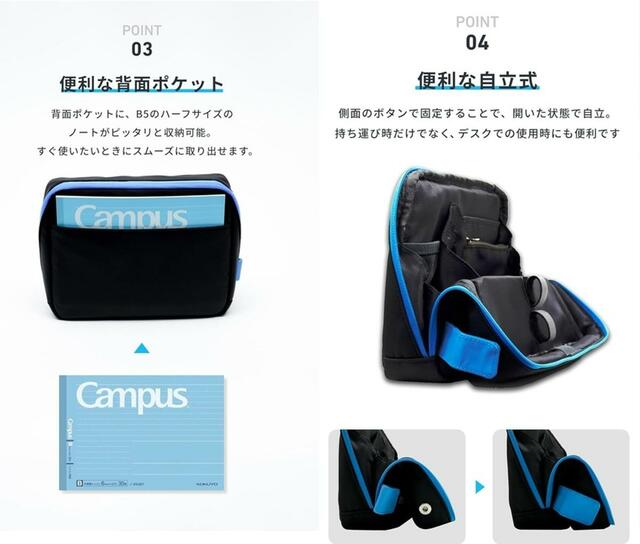 それもそのはず、文房具やオフィス用品などの大手メーカーであるコクヨと共同開発し、“スマート収容”を叶える万能ポーチなんです。