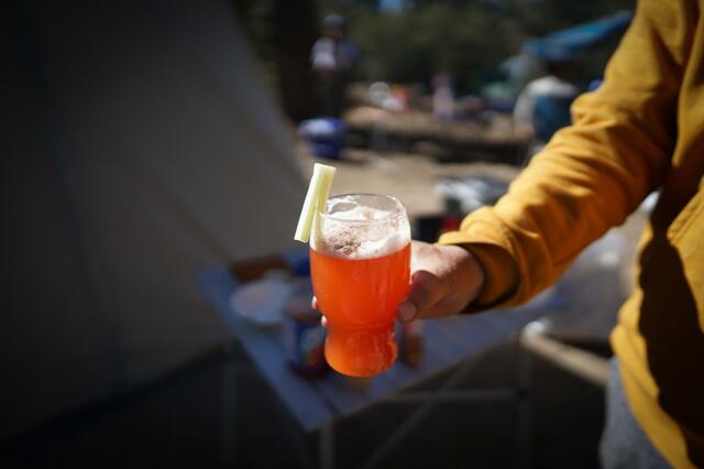 キャンプなど野外で飲む場合も、混ぜるだけで簡単に作れます。