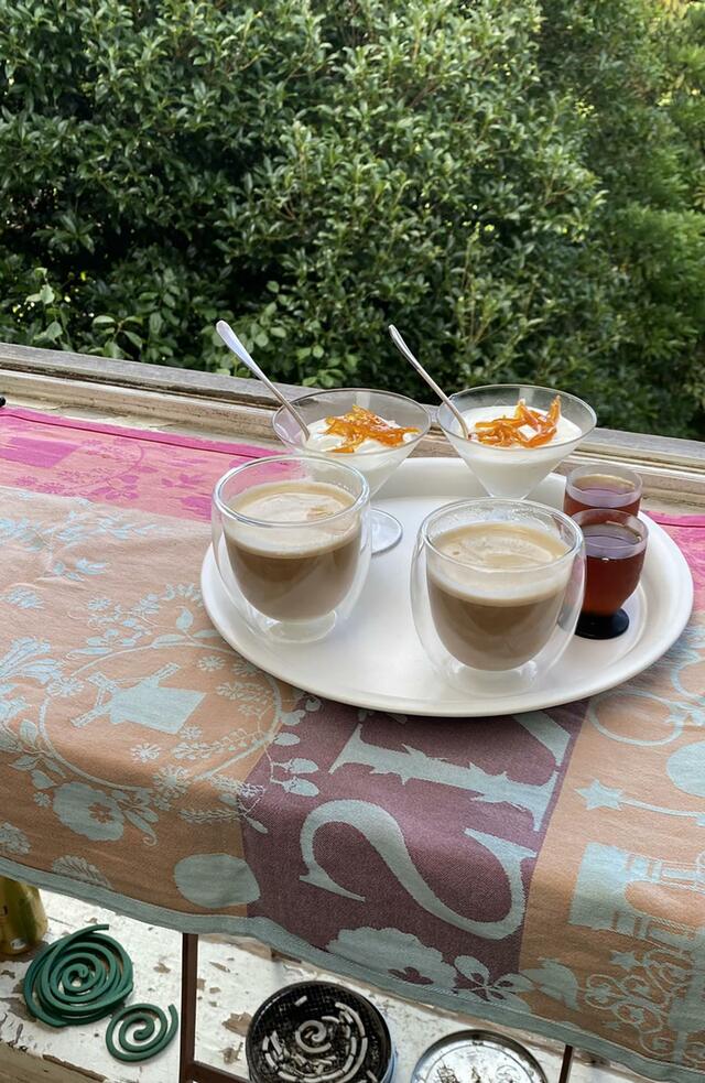 café au lait、ヨーグルト。本日の元気。クリニックで、月1の検診。