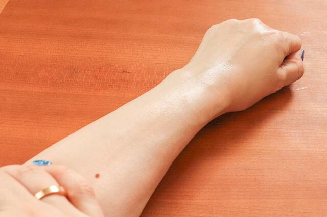 伸びがよく、塗ったあとはベタつきを感じません。