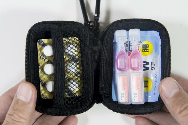 たとえばピルケースとして、普段持ち歩いている胃腸薬と目薬、頭痛薬を入れてみるとこのピッタリ感!