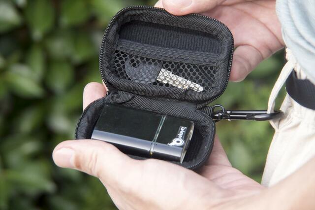 カラビナ付きなので、手ぶらで出かける時にベルトループにぶら下げて使ったり。