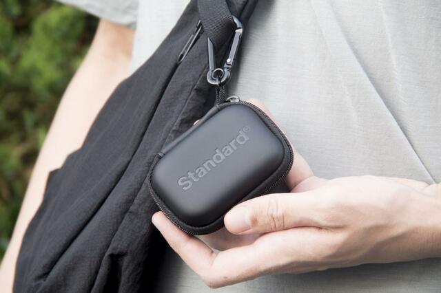 シンプルでスタイリッシュなデザインの生活雑貨が揃ったダイソーが手掛けるブランドStandard Products(スタンダードプロダクツ)の「カラビナ付 イヤホンケース」。