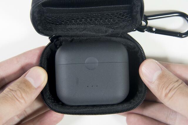 手持ちのワイヤレスイヤホンの中で一番ケースが小さいAnkerのSoundcore Liberty Air 2がギリギリ収まるサイズでした。